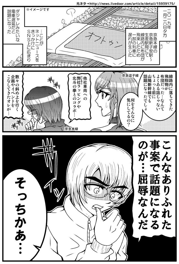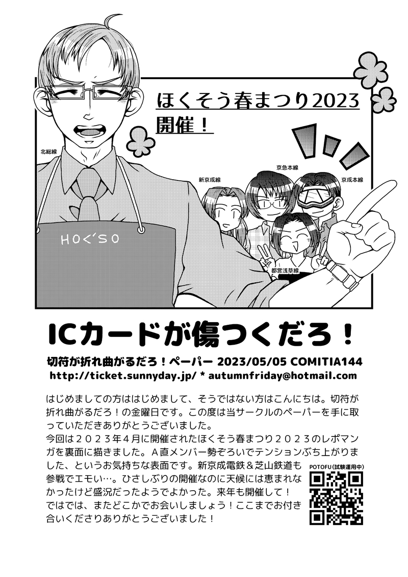 【お知らせ】【鉄道擬人化】サイトを更新しました。ILLUSTに過去に描いたマンガとかペーパーをUPしました。OFFLINEとブログは昨年のイベントのお礼や在庫状況、今後の参加予定など。お礼イラストはいつものようにHSです。 ▼サイト ticket.sunnyday.jp ▼ブログ donotcurveticket.blog.shinobi.jp/Entry/436/