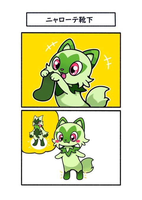 ニャローテのような靴下を手に入れたニャオハ #ポケモン #Pokémon #イラスト #ポケモンSV