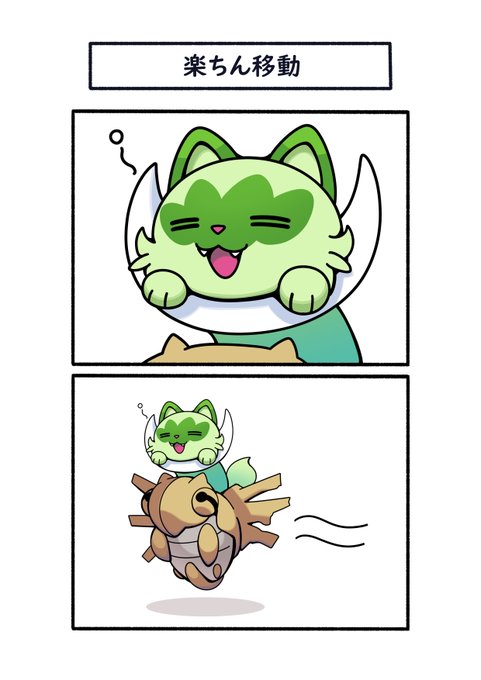 ヌケニンに乗って移動するニャオハ #ポケモン #Pokémon #イラスト #ポケモンSV