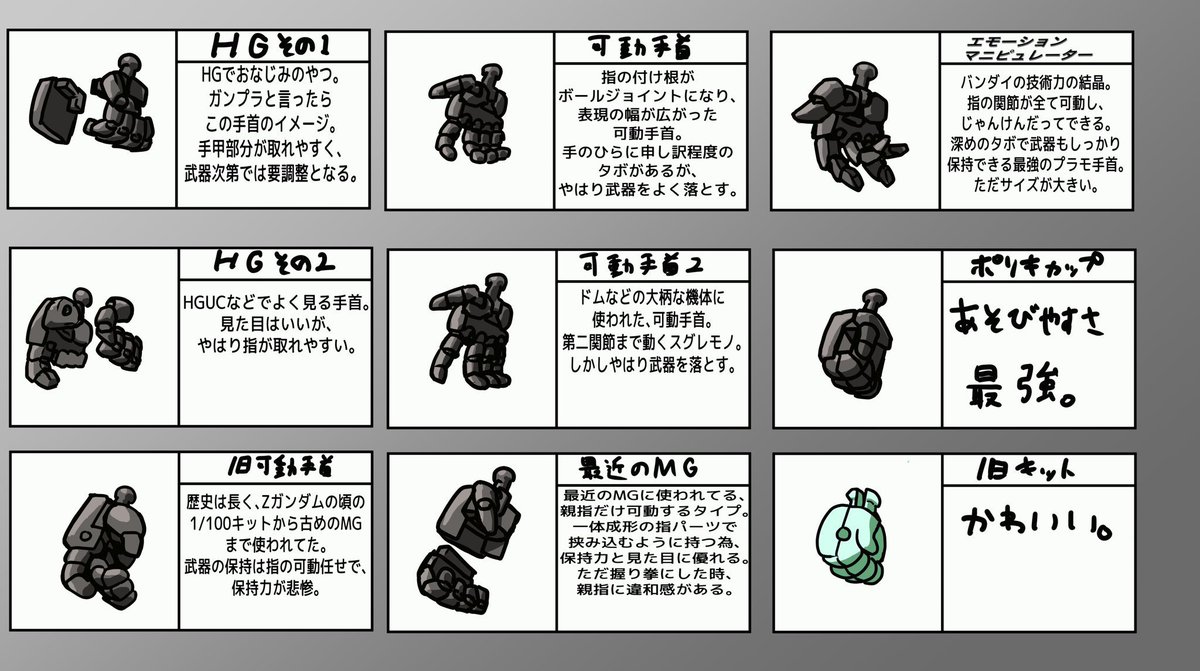 個人的ガンプラ手首表。 (※あくまで素組みでの評価です。 改善策は色々あります。) #ガンプラ