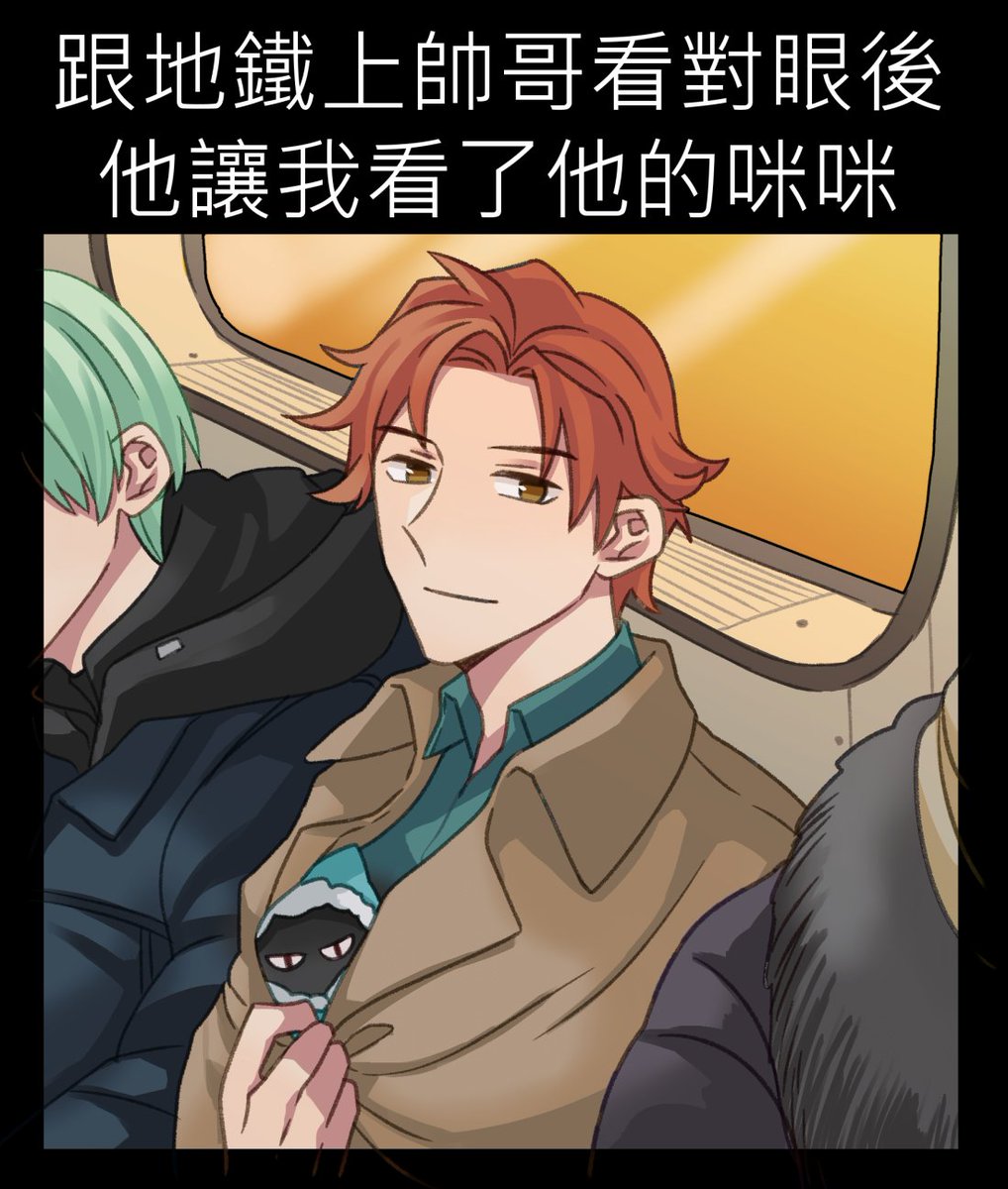 "Caught my eyes with this handsome guy on subway and he showed me his meow meow." I don't know if there's an original EN text but I wanted to draw this meme 😂 Original meme pic in comment