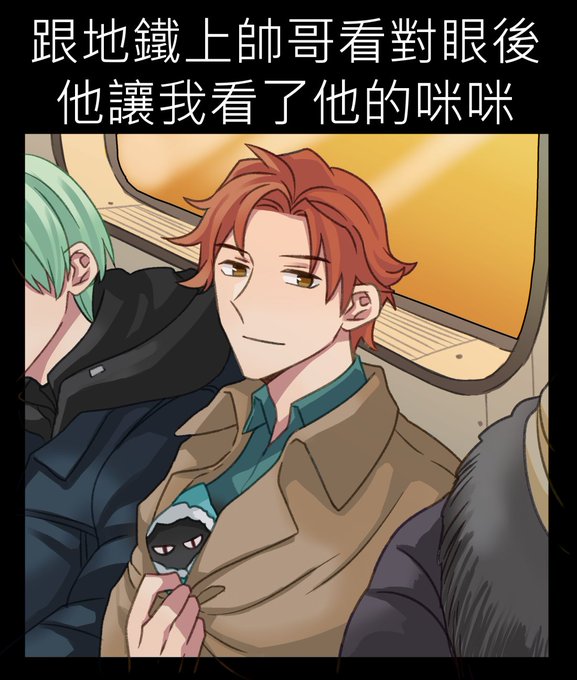 45 174 "Caught my eyes with this handsome guy on subway and he showed me his meow meow." I don't know if there's an original EN text but I wanted to draw this meme 😂 Original meme pic in comment 23/06/07 10:08