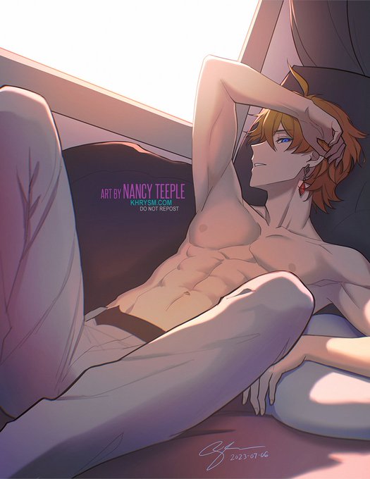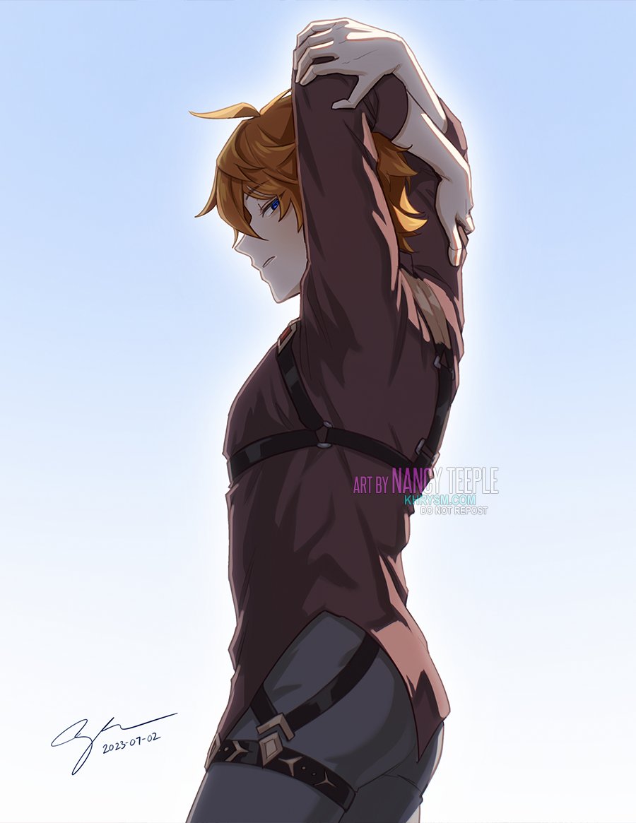 🐳 Just a shirtless Tartaglia. Yup. I might have been using my husband as a reference so the angle of the body and legs would look more natural... 😅 #tartaglia #genshinimpact #genshinfanart #HoYocreators