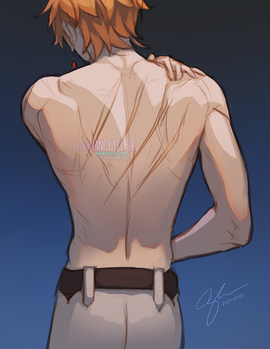 No one can convince me that Kaveh would wear that shirt and expect NO ONE would be tempted to touch his back. 🙃 #haikaveh #genshinimpact #genshinfanart #hoyocreators