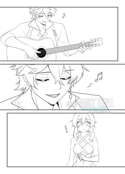 "Private Concert" 🐳✨ Can't decide if I want to do color or tones... #chilumi #タル蛍 #genshinimpact #genshinfanart #HoYocreators