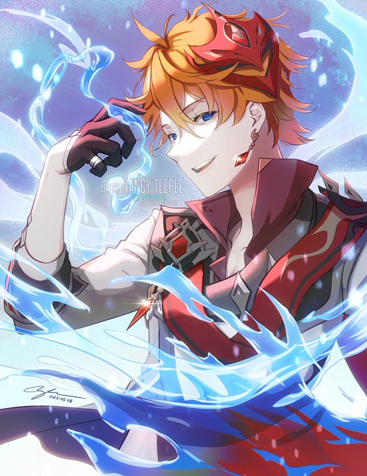 Playing with water 🐳 Perhaps I should have drawn a little narwhal... 🤔 Oh well! I still love the way this turned out. :D #tartaglia #genshinimpact #genshinfanart #hoyocreators