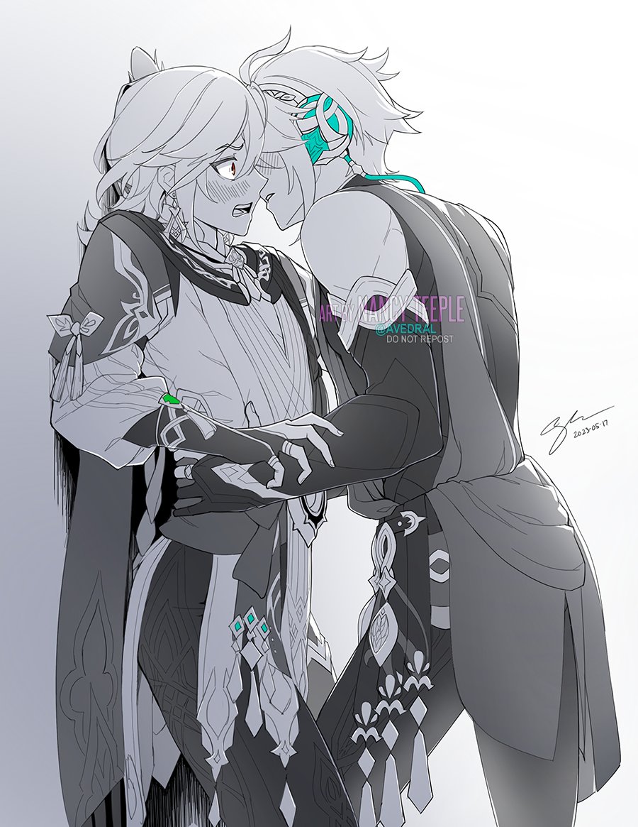So... Here's the uncropped version of one of the Haikaveh drawings I posted a couple days ago. The details on their clothing make me cry... 🥲 #haikaveh #genshinimpact #genshinfanart #hoyocreators