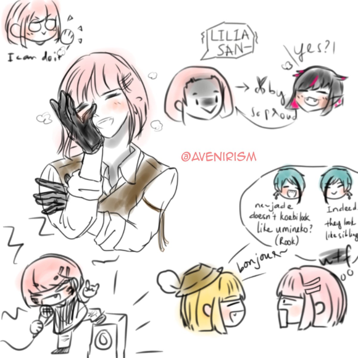 I finally made my OC for #twst😭 She somehow looks like Rook with pink hair from behind (she usually use heels so their heights are kinda the same) Somehow she gets along with Lilia really well! #twstプラス