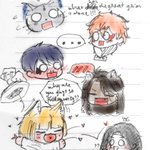 ❤: my my your outfit is a bit exposed~ 💛: and yours is too... discreet... nothing to show off beside this face and beautiful hands... Shylock from #まほやく_FA 牡丹燕菜 from #食物語_FA#食物语