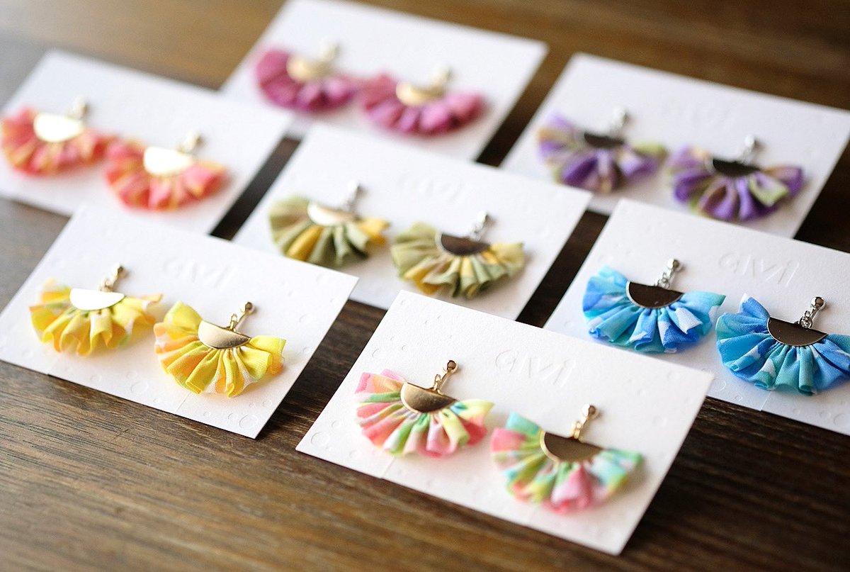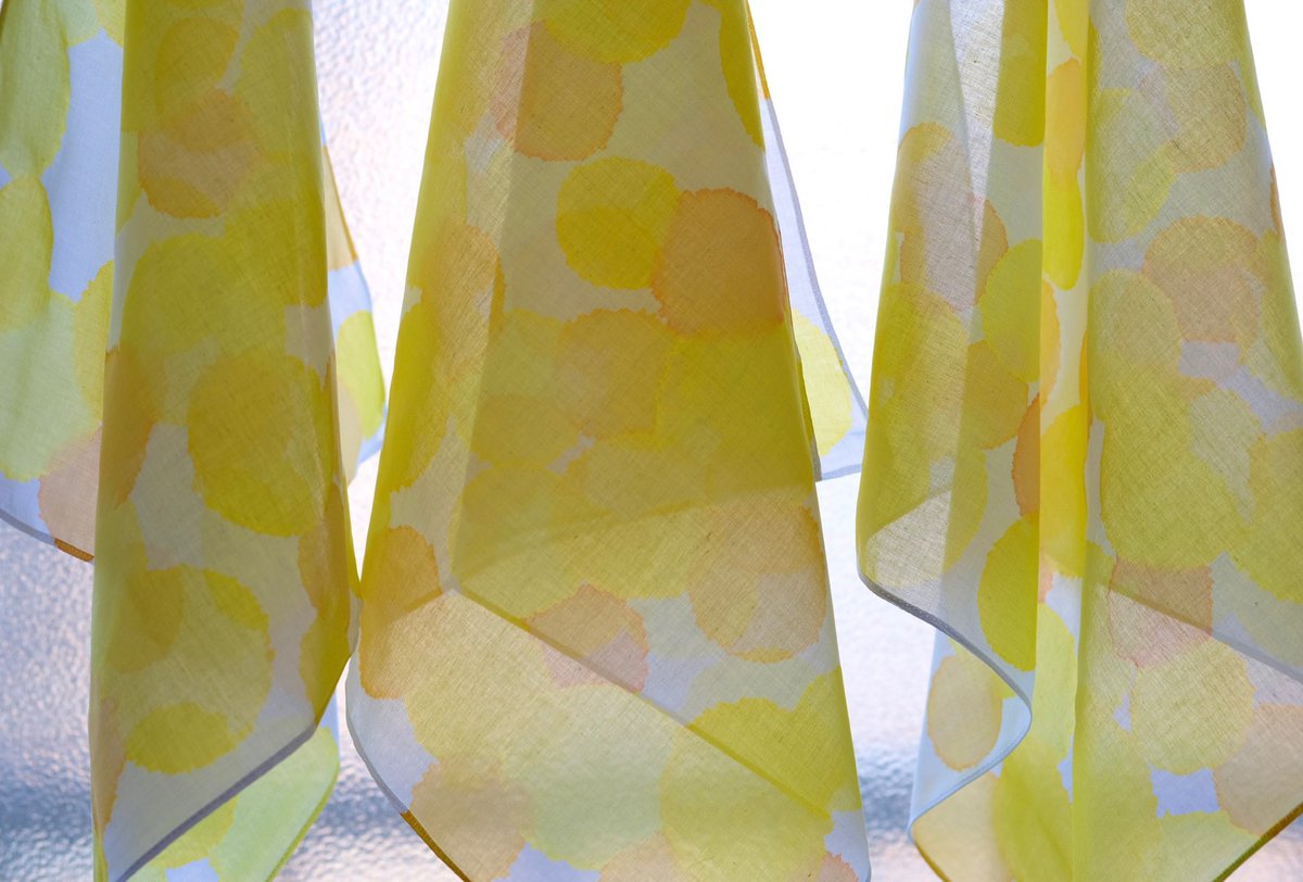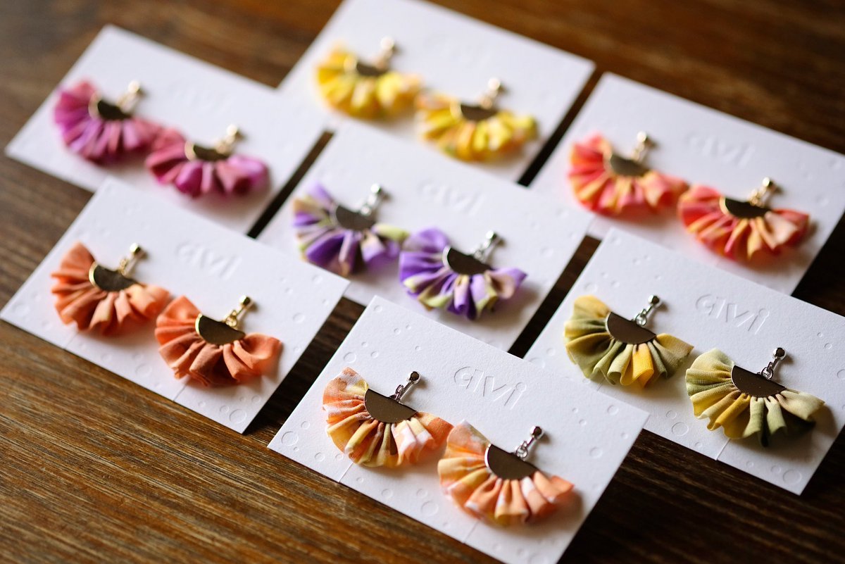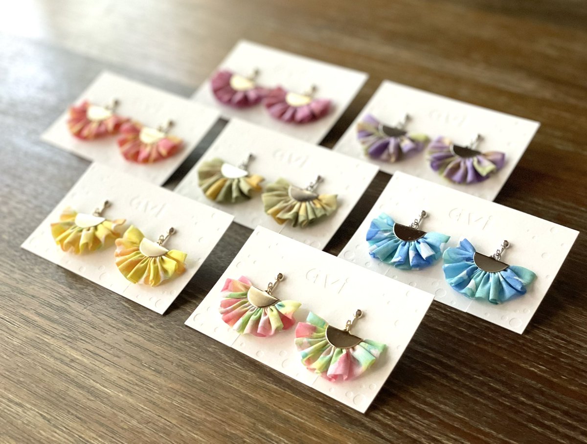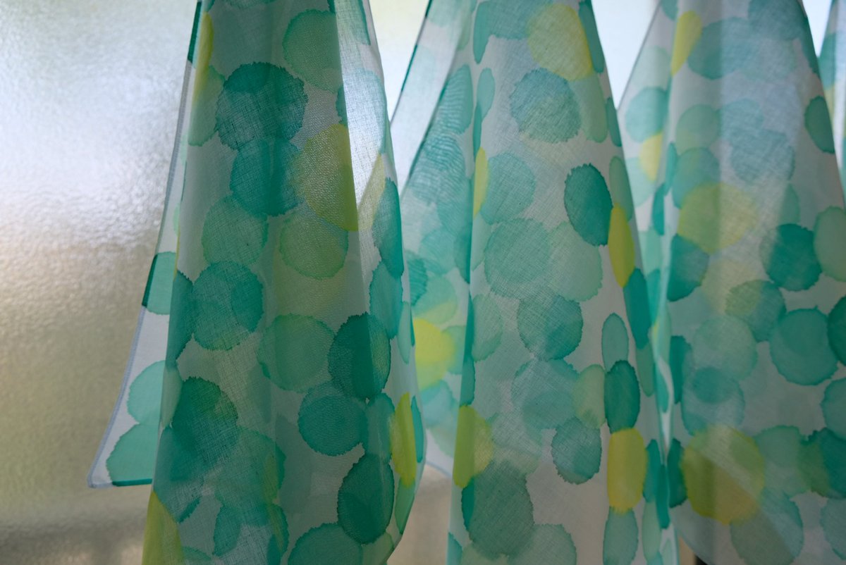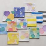 #8月になったのでフォロワーさんに自己紹介しようぜ 布に手染めして制作しています。 主にハンカチを、時々アクセサリー、型染めパネルを作ってます。 minneハンドメイドマーケット2023 9/18出店します✨