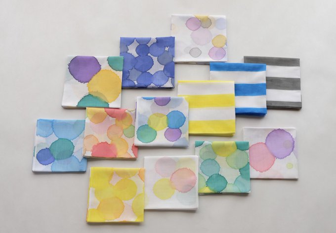 #8月になったのでフォロワーさんに自己紹介しようぜ 布に手描きで染めて制作してます。 主にハンカチ、マスクやアクセサリーも時々作ってます。 手の温もりを大事に✨心が嬉しくなるようなものづくりを心がけてます。
