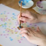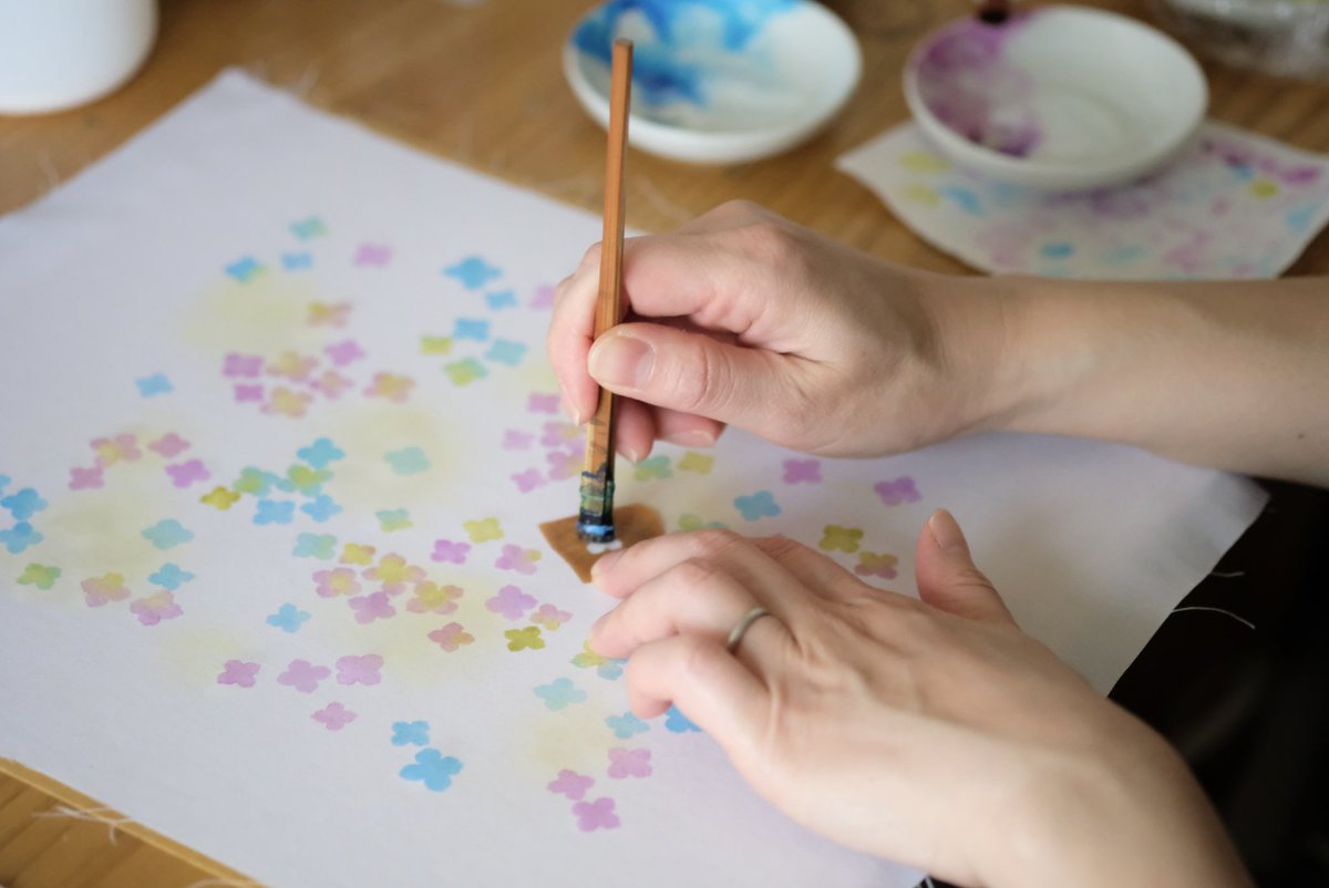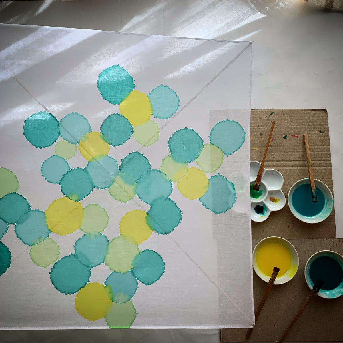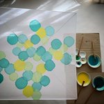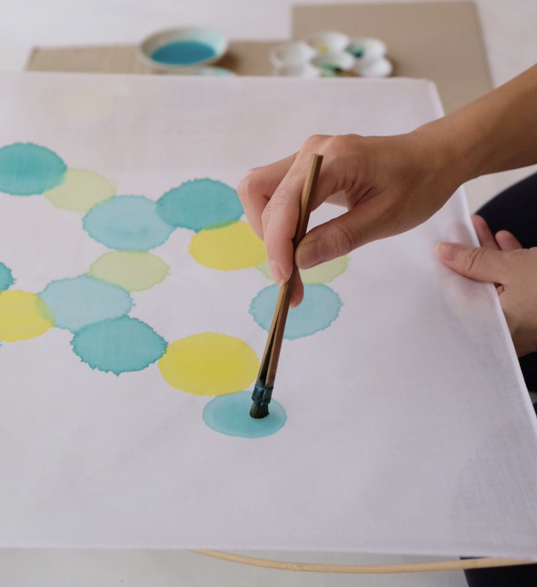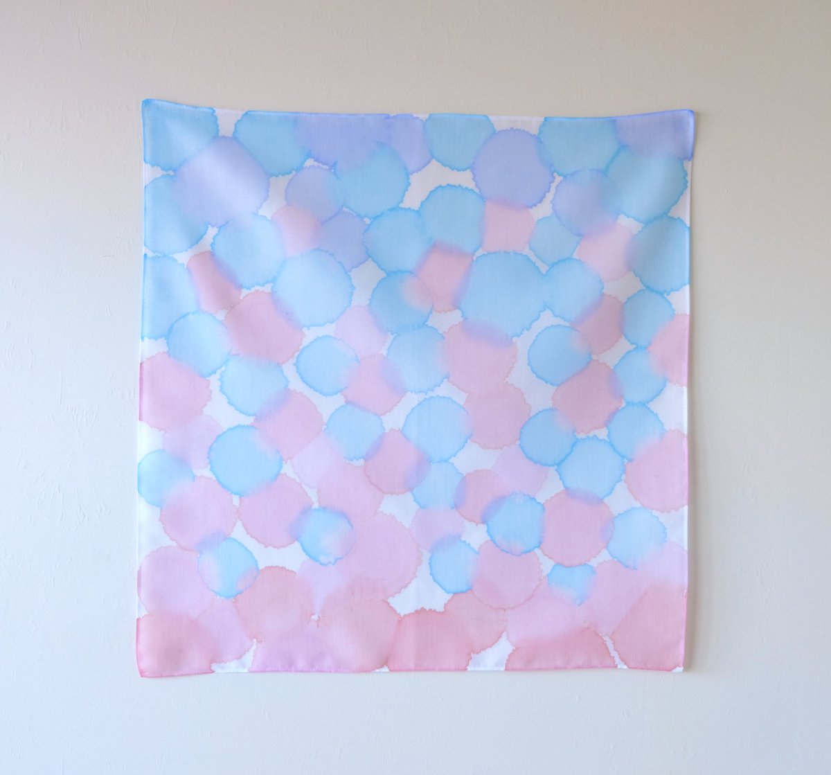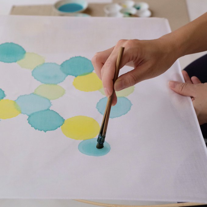 #7月になったのでフォロワーさんに自己紹介しようぜ 布に手描きで染めて制作してます。 主にハンカチを。マスク、アクセサリーも時々作ってます。 心が温かく嬉しくなるような作品を作っていきたいです✨