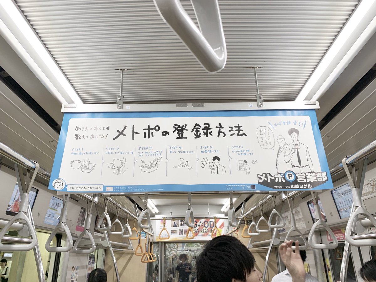 4月から始まった「メトポ」のイラスト、実は毎月絵が変わっています! 東京メトロ全駅で、駅構内や電車内、デジタルサイネージに動画とたくさん登場しています。 写真は6月と7月のもの。 8月のイラストを見つけたら教えてくださーい! #メトポ #サラリーマン山崎シゲル