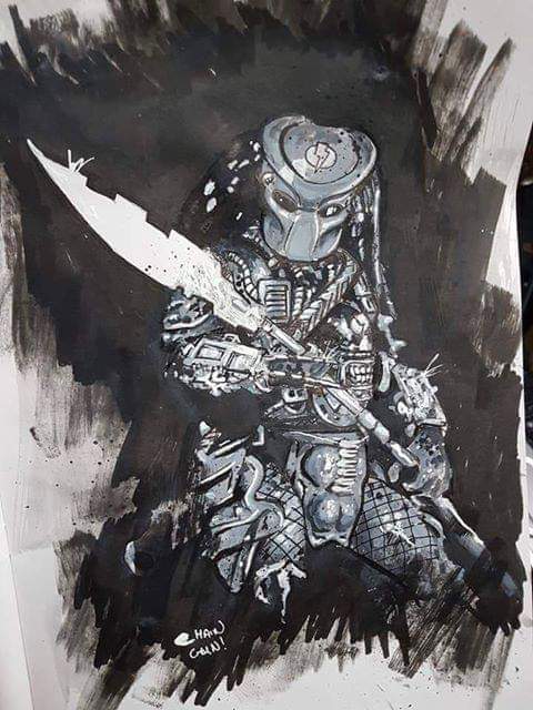 How about more awesome Predator artwork from Inktober? This bad boy is David Withers' take on Broken Tusk - aka Dachande - from Dark Horse Comics' original Aliens vs. Predator. #Predator #ThePredator #Yautja #AliensVsPredator #Dachande #BrokenTusk #Inktober #DavidWithers