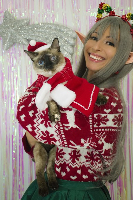 Voici les dernières de la série Noël, avec le meilleur chat du monde 😻 #chats #cats #cosplay #cosplayergirl #cosplaycat