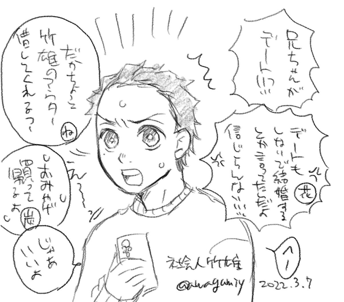 1 4 りーまん設定🎴がスーツ以外はスウェットと👖くらいしか私服持ってないので、🎋雄が貸してくれる落書き 炭善♀ 23/03/07 22:25