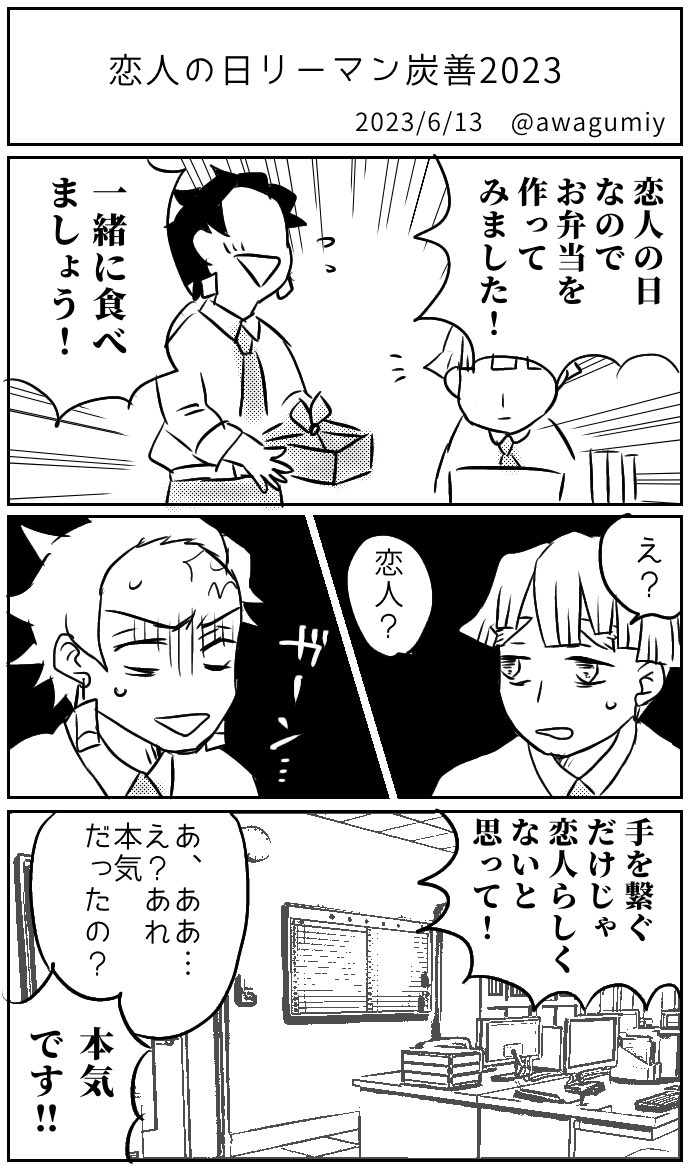 26 93 #おにぎりの日のたんぜん 第4回開催ありがとうございます🍙💕 現パロ、りーまん先輩後輩設定、りもわでなかなか会えない炭善です。リプにおまけ落書き 23/01/17 22:05
