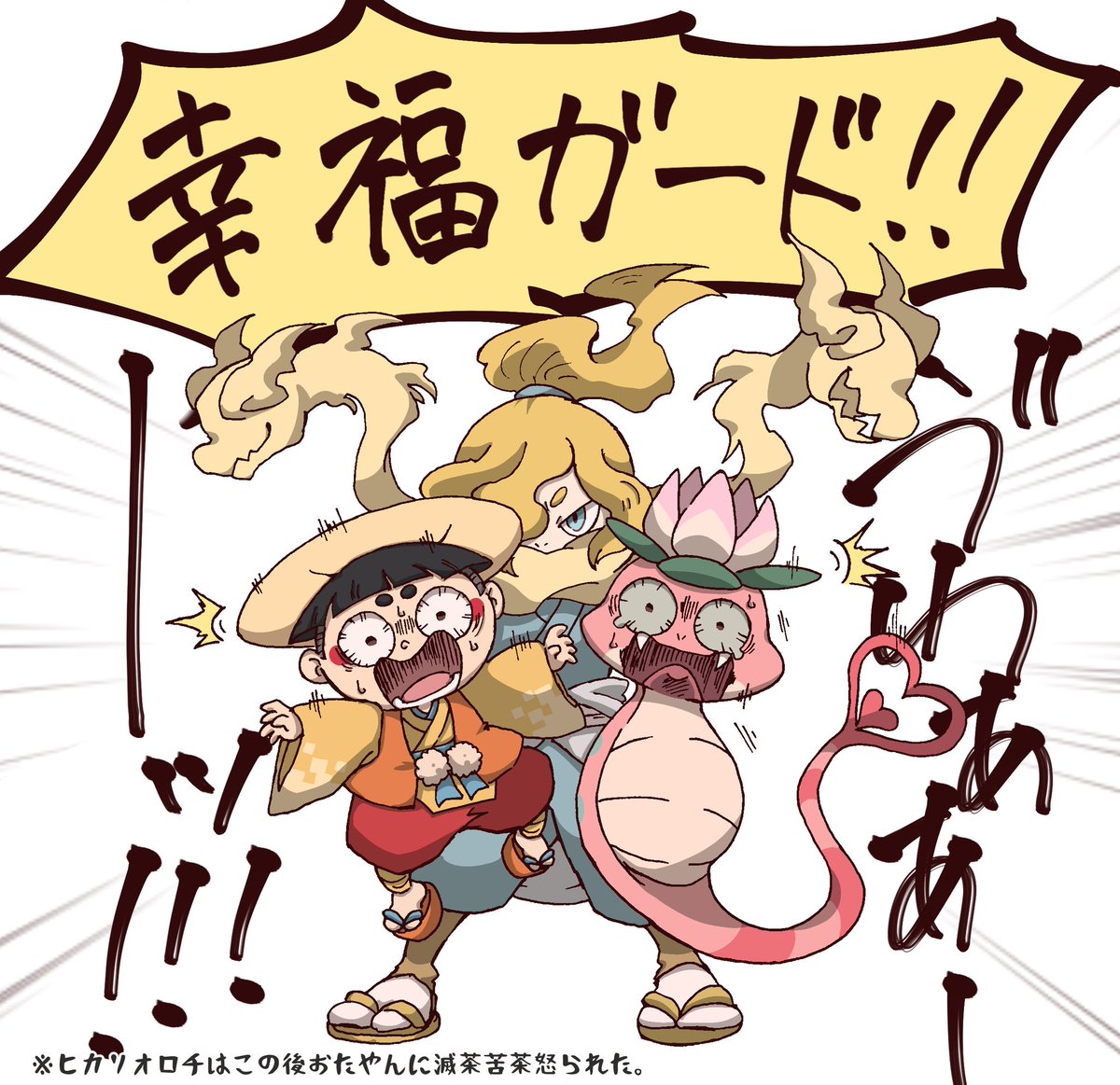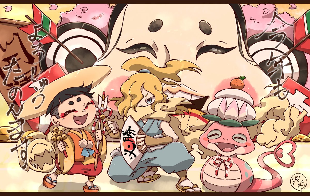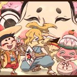 ※個人的な妄想※ 満腹おたふく駅組って言うのを勝手に作りまして…😊描いてて楽しかったので落書きに色をつけました。時に助け助けられお祭り騒ぎな縁起の良い賑やかでこぼこトリオです