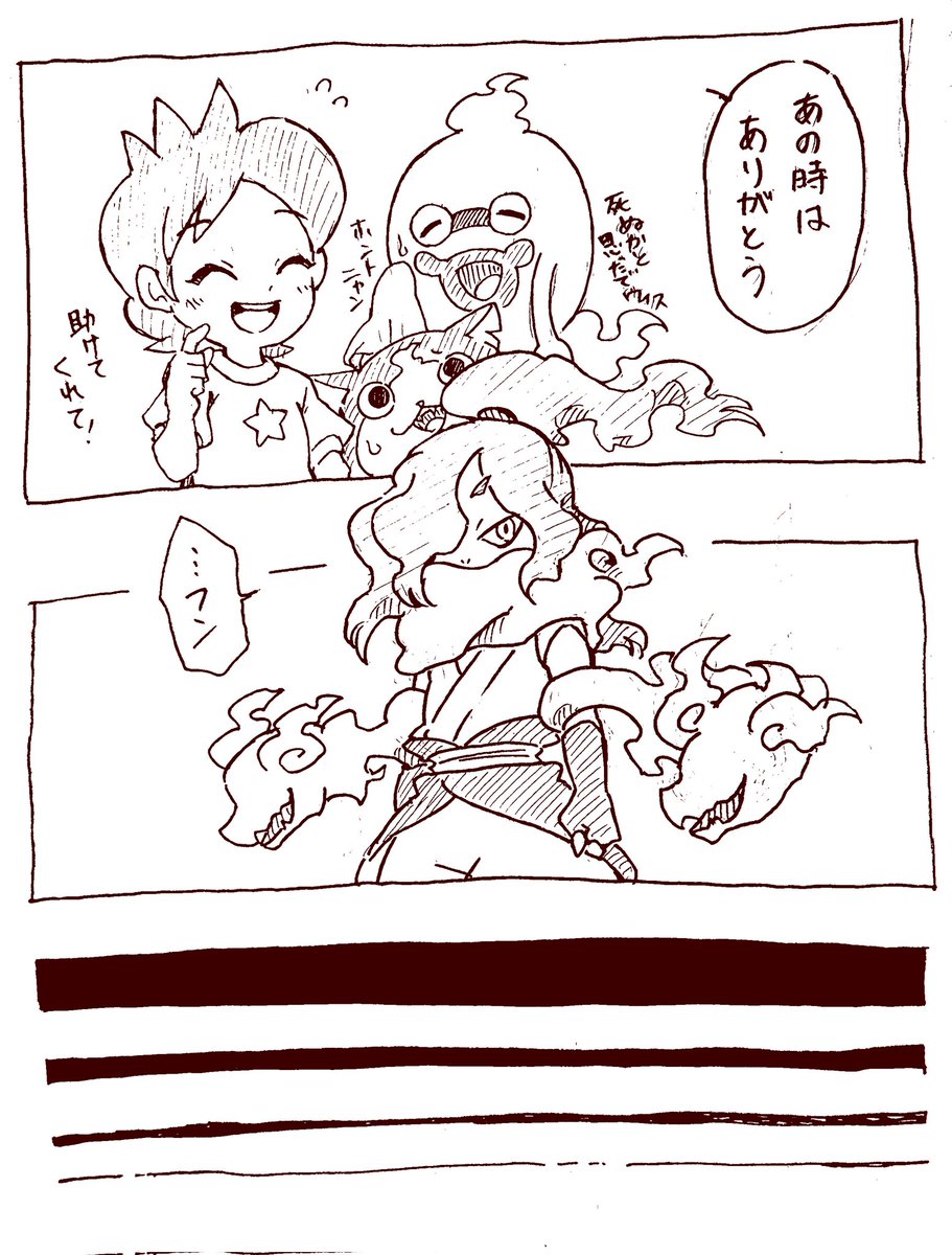 妖ウォ9周年おめでとうございます…!無印のオロチがキッカケでゲーム始めたのでおめでたい勢いでケータくんとの無印漫画描きたいだけ描きました…🥳(※若干原作と違うので暖かい目で🙏)①