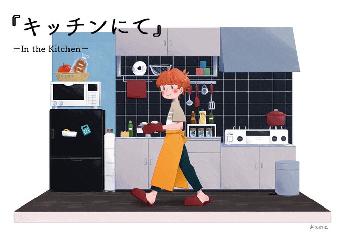 【告知🍳】個展『キッチンにて』 「キッチンとひと」をテーマにした シリーズ作品を展示します。 会場:DESIGN FESTA GALLERY/WEST 2-D 会期:2022.07.16-7.18 11:00-18:00 (初日のみ12:00~) @DFGHarajuku #DFGHarajuku #個展 #イラスト #illustration
