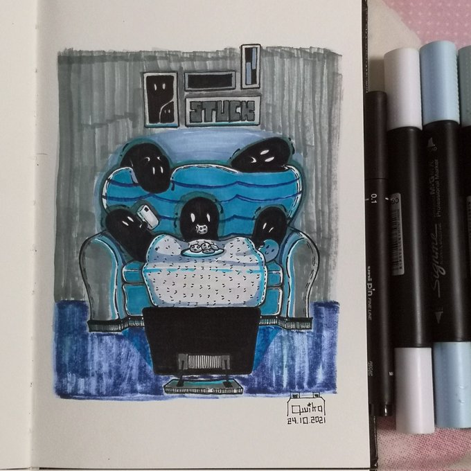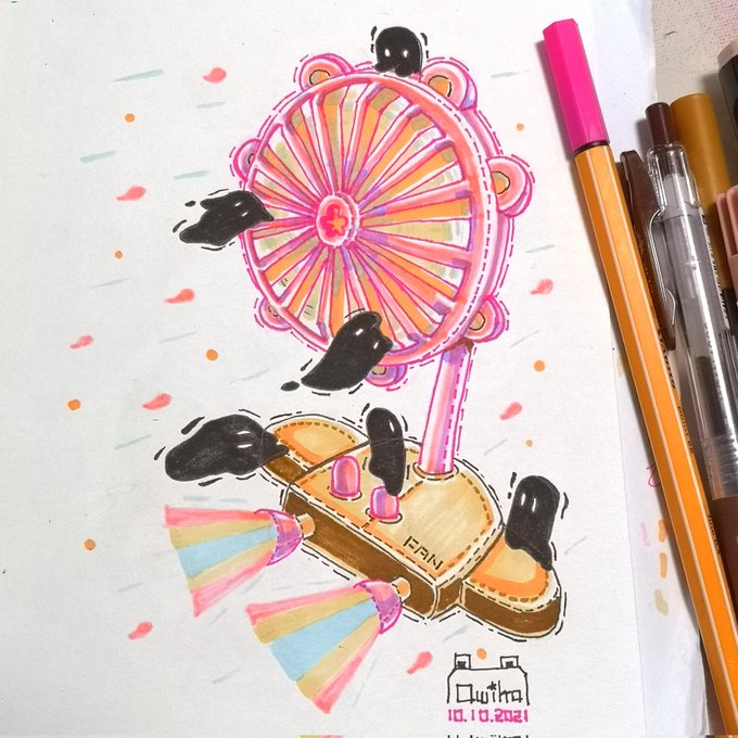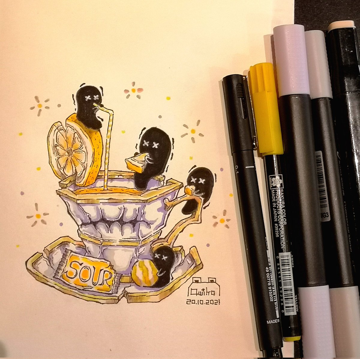 #inktober2021 Day3: Vessel - Little baby black one helps red blood cell caring thing in blood vessel
