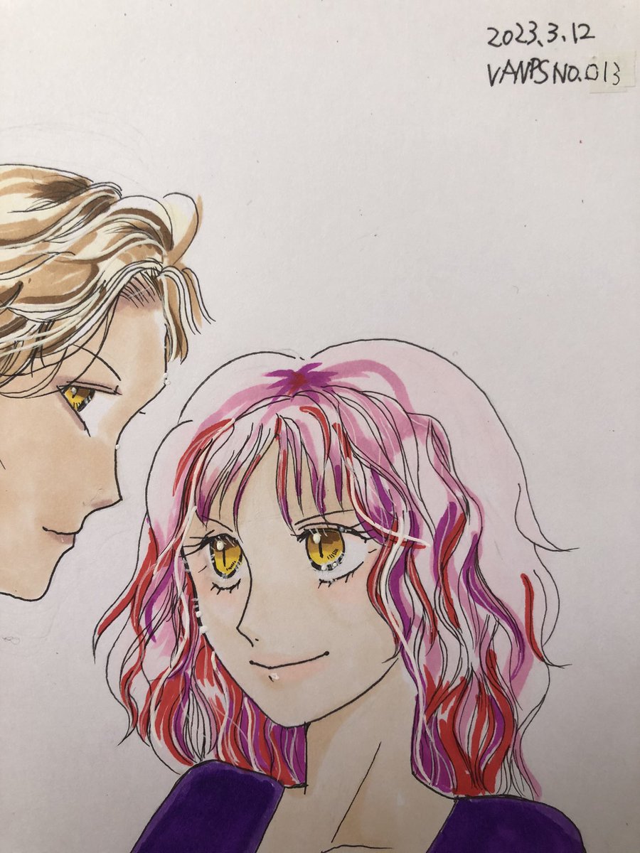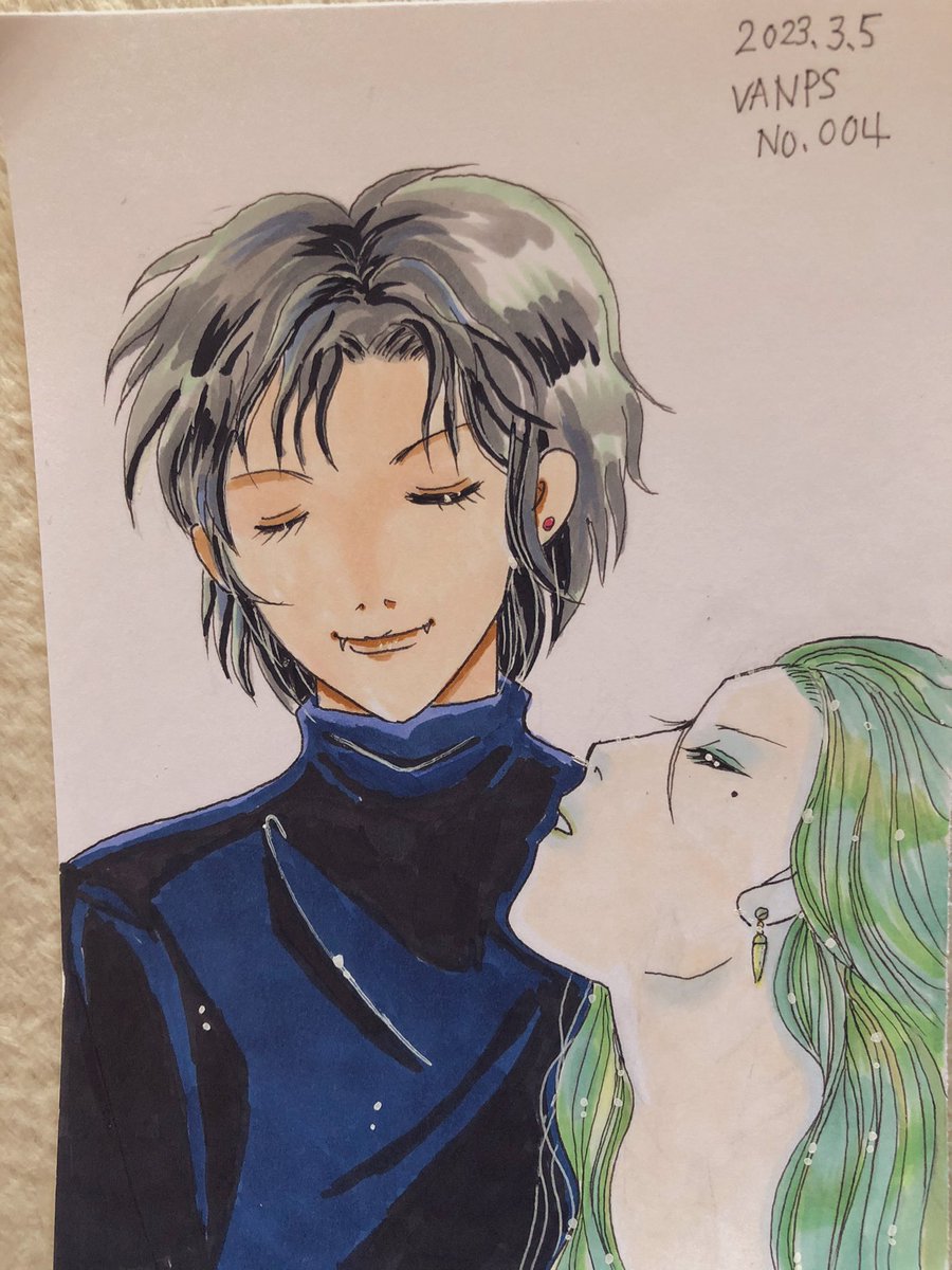 1994年のイラストのリメイク。今日の1枚。左が1994年、右が今日のもの。1日1枚! #オリジナルイラスト #イラスト好きさんと繋がりたい #絵描きさんと繋がりたい #みんなで楽しむTwitter展覧会 #過去絵を描き直ししてみる #ヴァンパイア