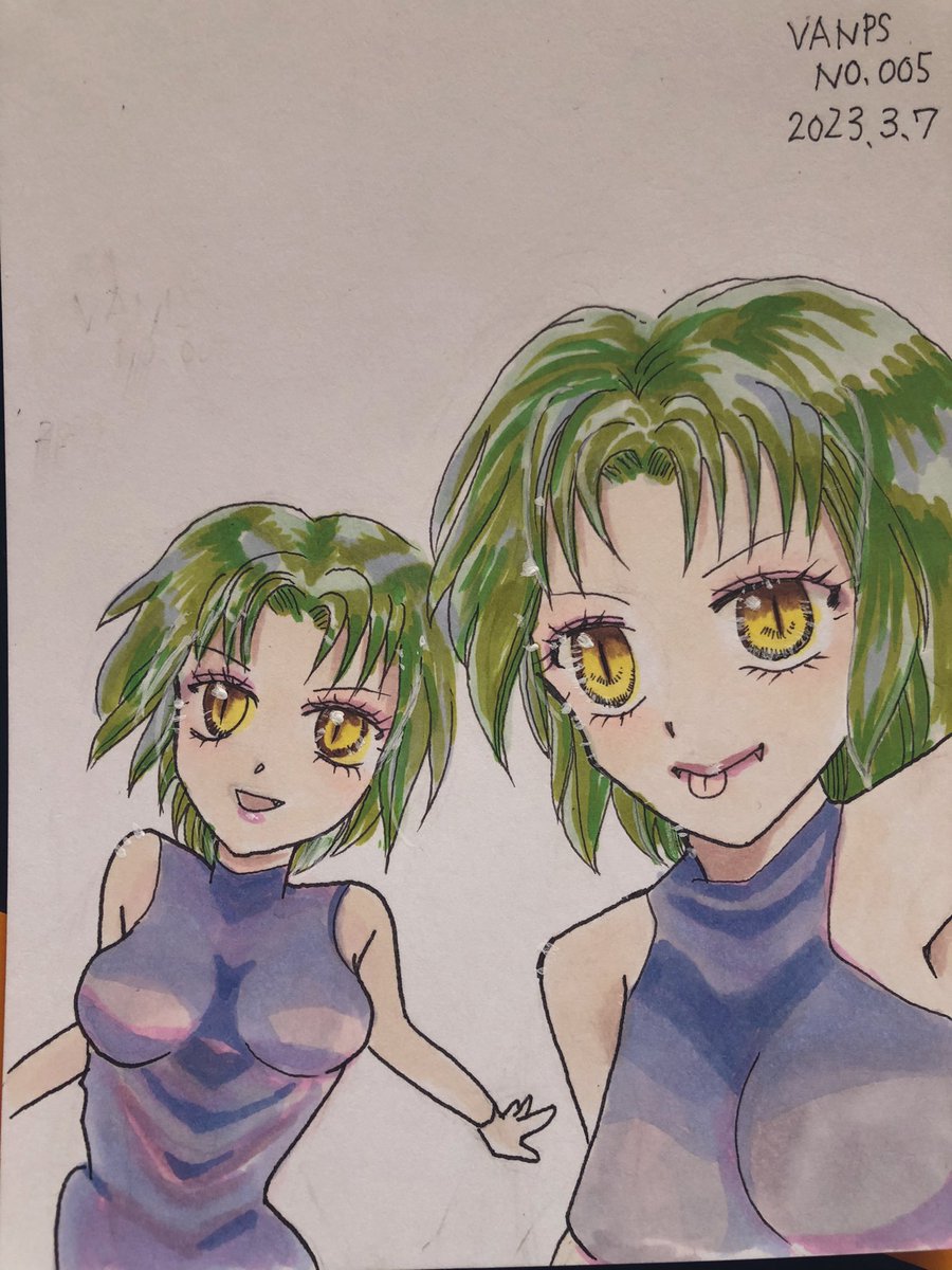 1994年5月29日のイラストのリメイク。今日の1枚。左が1994年、右が今日のもの。 #オリジナルイラスト #イラスト好きさんと繋がりたい #絵描きさんと繋がりたい #みんなで楽しむTwitter展覧会 #過去絵を描き直ししてみる #ヴァンパイア