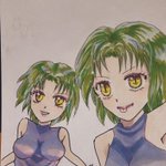 1994年10月28のイラストのリメイクです。左が1994右が今年のもの。昔の方がいい気がする(笑) #オリジナルイラスト #イラスト好きさんと繋がりたい #絵描きさんと繋がりたい #みんなで楽しむTwitter展覧会 #過去絵を投げて絵を描いた気になろうキャンペーン