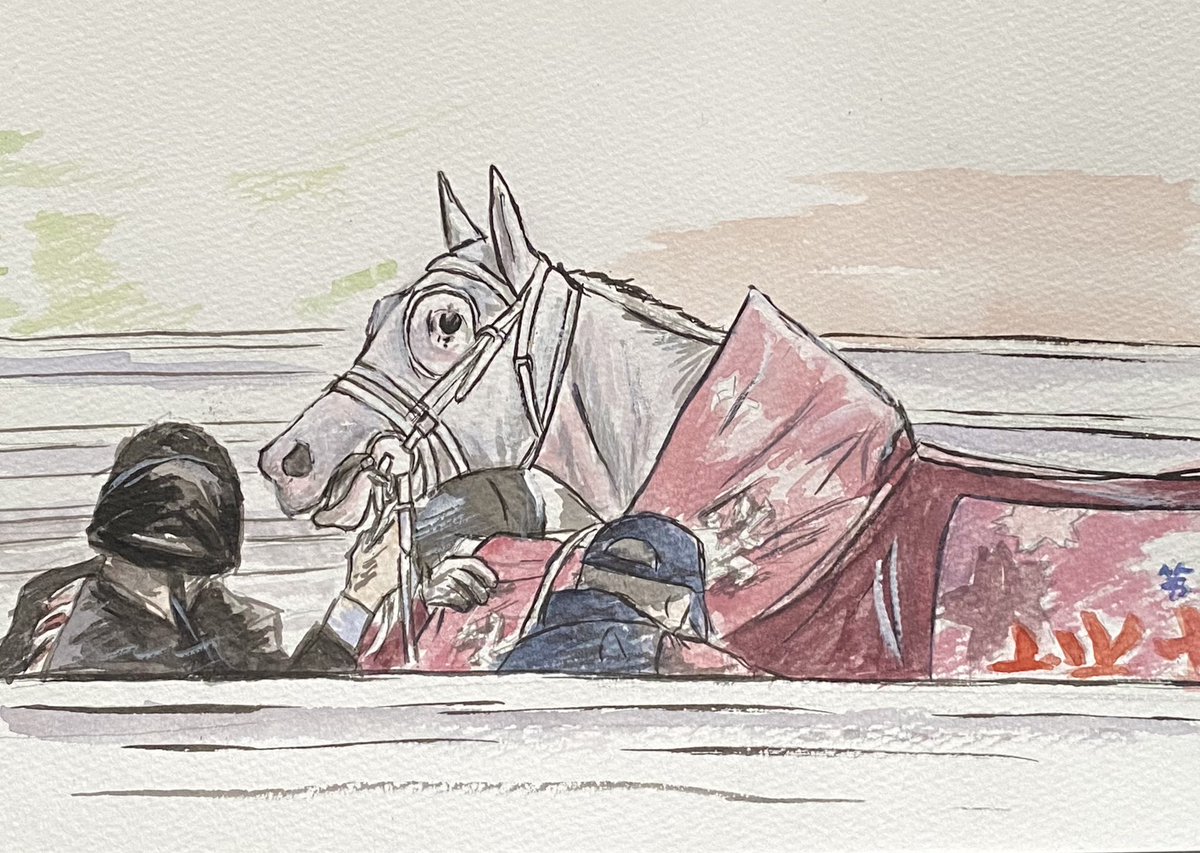 オークスを勝ったユーバーレーベン描かせていただきました。怪我が重症ではなくて良かったです!