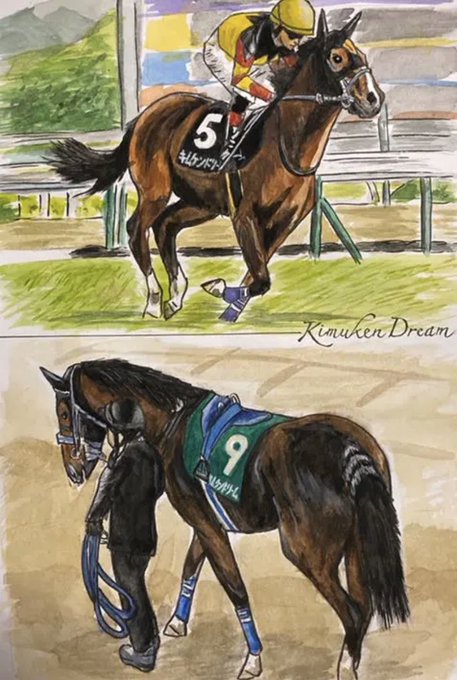 5 20 キムケンドリームの尻尾が縞模様だと聞いて昨年描いた絵です。 初ダート、2着!頑張った😃 20/10/04 12:56