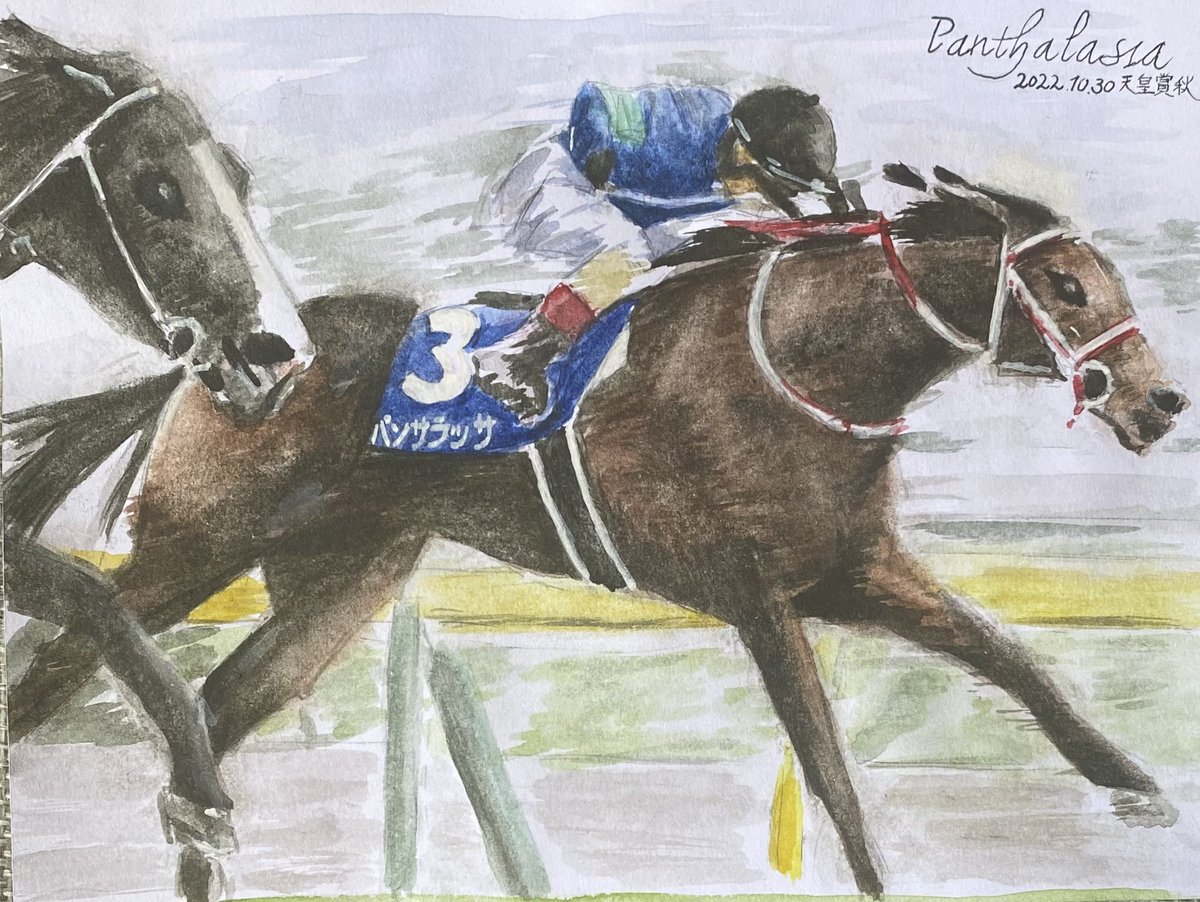 81 493 天皇賞のパンサラッサの逃げに絵を描きたい衝動にかられ描きました! #パンサラッサ 22/11/01 09:16