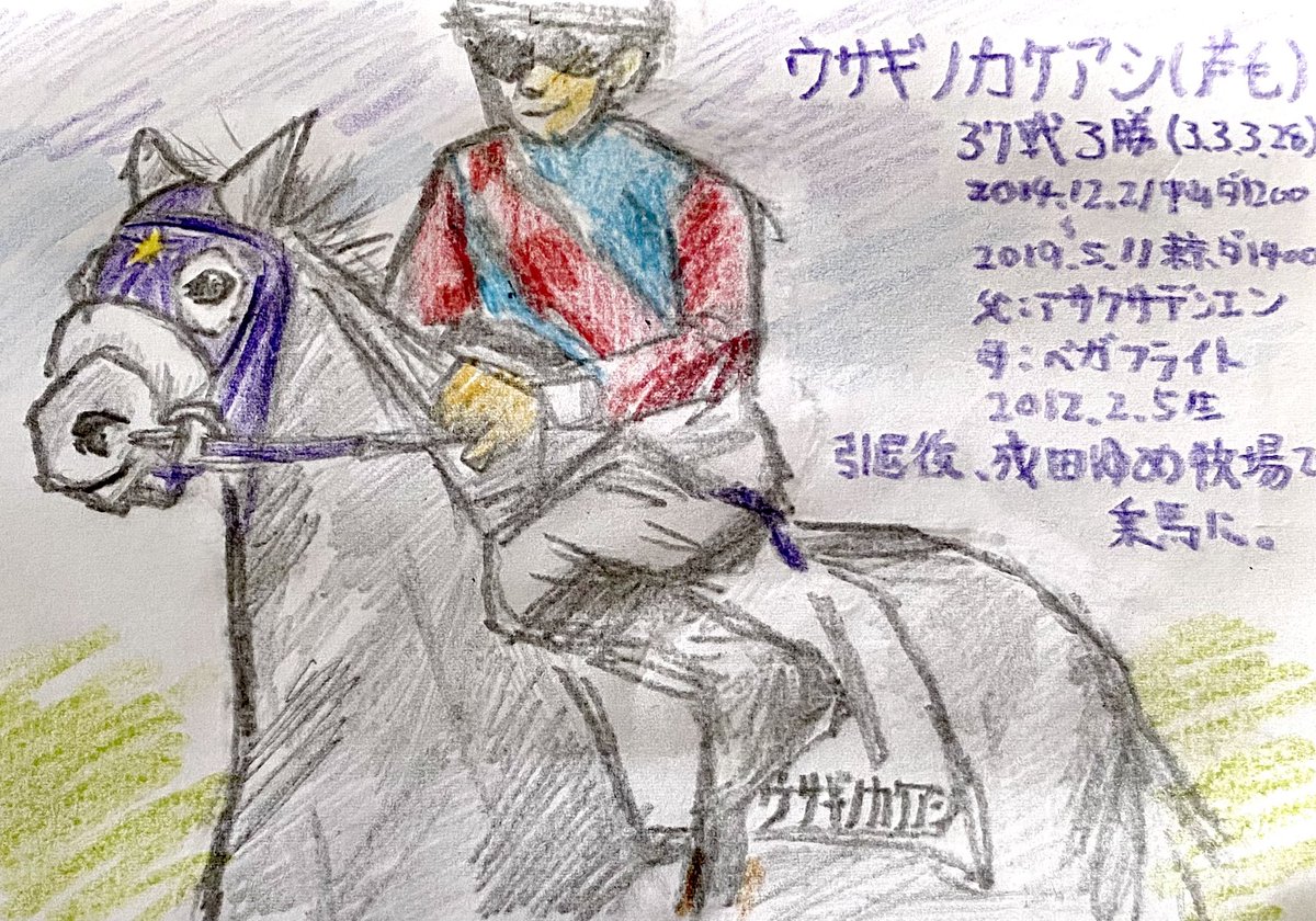 あけましておめでとうございます🎍 卯年ということで、ウサギノカケアシという馬を思い出して描きました。 人気薄でも最後確実に追い込んでくる印象があった馬でした。 #ウサギノカケアシ