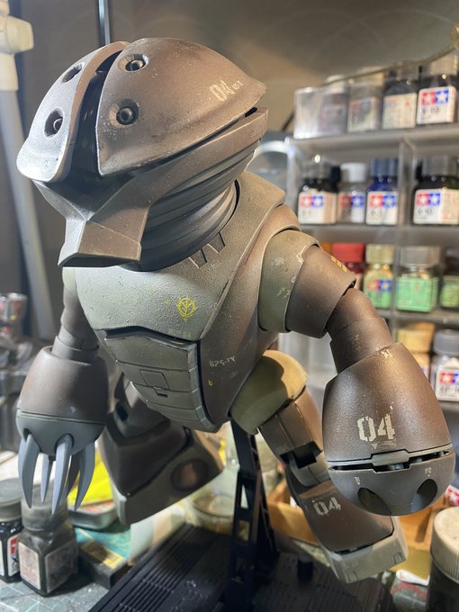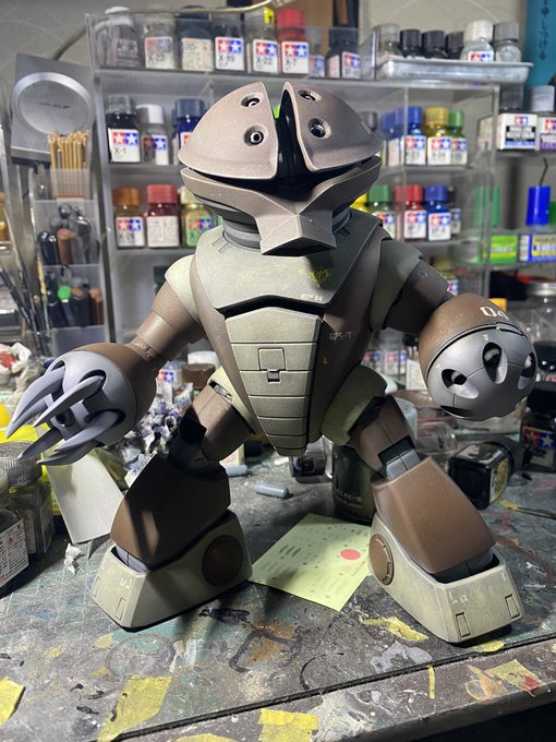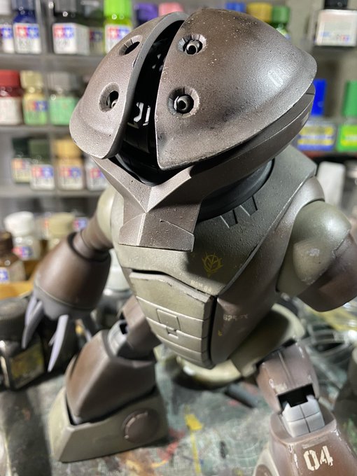 途中経過投稿せずに一気に全身塗ってデカールまで貼りました。 もはやこれから仕上げ段階です。 #アッガイ #ガンプラの画像を貼るとRTされると聞いて #ガンプラ好きな人と繋がりたい #ガンプラはどんな自由な発想で作ってもいいんだ