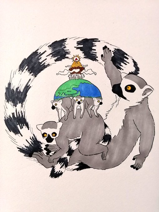 『万物ワオキツネザル』 #ワオキツネザル #アナログイラスト #私の絵柄が好みって人にフォローされたい