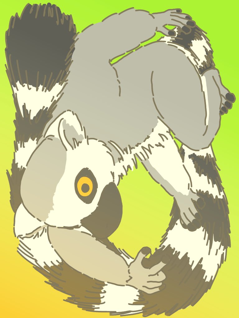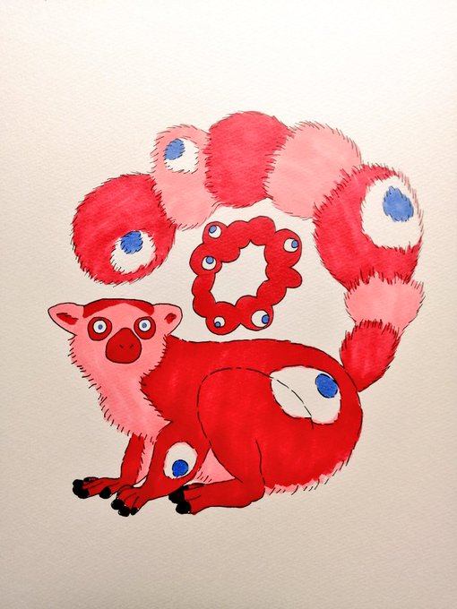 『露出狂ワオキツネザル』 #ワオキツネザル #アナログイラスト #私の絵柄が好みって人にフォローされたい