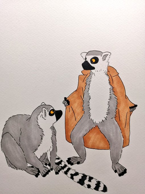 2 16 『急にハモられたワオキツネザル』 #ワオキツネザル #コクレルシファカ #アナログ絵 #アナログイラスト #私の絵柄が好きな人にフォローされたい 21/01/18 17:55