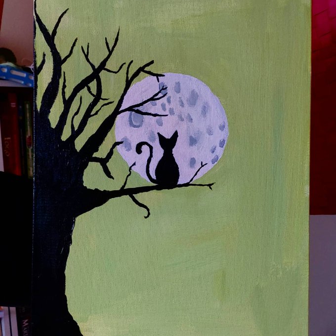 Dia 18 - Animal Fiz esse quadro que ainda ta incompleto mas adorei o gato é é um animal ne heheh Lista do @Tatsunylen #ink #inktober2021 #inktoberday18 #inktoberday18moon