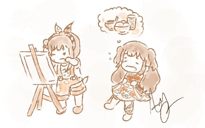 Anya: I'm hungwyyyyy~~~ 。:゚(;´∩`;)゚:。 Iofi: wait, lemme finish this painting real quick! (*・~・*) @airaniiofifteen @anyamelfissa #ioarts #anyatelier #hololivefanart #holoID
