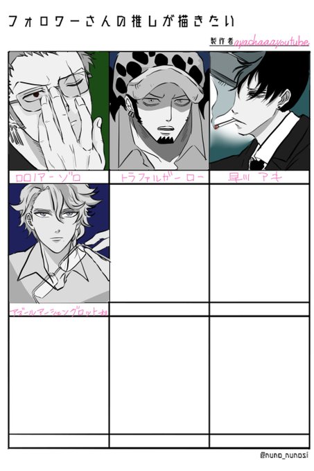 #フォロワーさんの推しが描きたい 4名様リクエストありがとうございました! 男性キャラ得意ではないので自信はないですが、一生懸命描きました😍 またリクエスト企画やった時はよろしくお願いします🥳