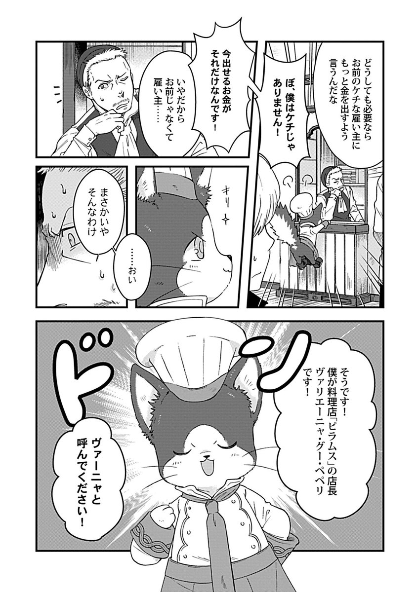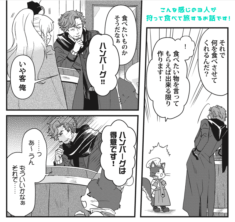 見た目猫なお世話妖精とドラゴンみたいに強い看板娘と方向音痴魔法使いおじさんの3人がふたつ星シェフを目指して旅するキッチン物語🍽 食材は狩れるもの狩る!🍖(1/8) #漫画が読めるハッシュタグ #ヴァーニャのおいしい旅キッチン
