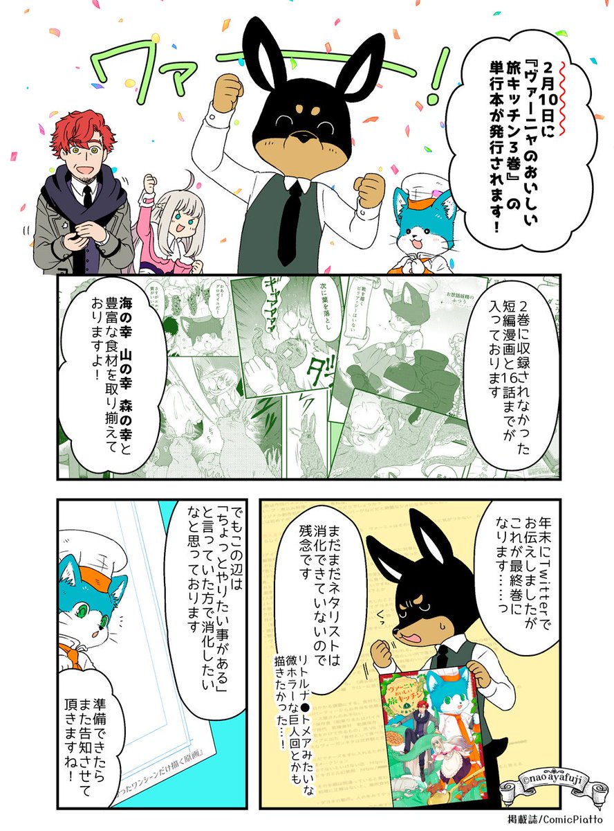 『ヴァーニャのおいしい旅キッチン3巻』が2/10に発売されます!!🎊🎉ワーワー!🎉 3人のお料理旅を最後までよろしくお願いいたします! 1話お試し読みはこちら🍽 twitter.com/ayafuji2/statu…