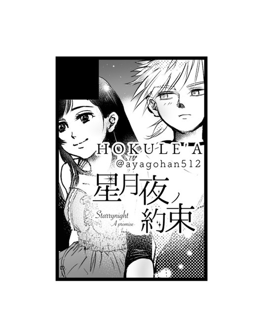 12/11のサークルカット少し描き直してみた。星月夜ノ約束の主催さまのロゴが神すぎる✨画はさておいて描いたこの場面にもぴったりで二人もきっとはにかみが倍増している事だよ…