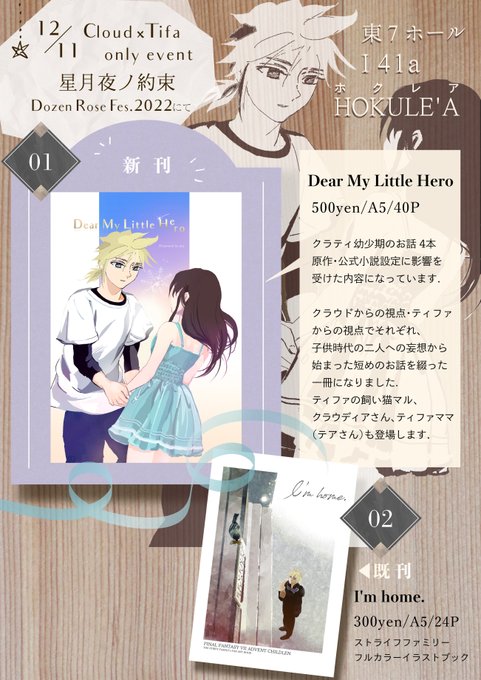 24 56 東ホール I 41a #星月夜ノ約束 にて 新刊・既刊頒布いたします。新刊は幼少期クラティのお話となりました…3.4枚目は新刊サンプルです🌠 会場でお目にかかれるのを楽しみにしております! #クラティ 22/12/09 18:37