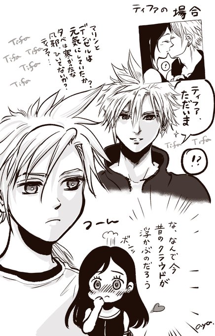 一緒に暮らしてからのふたりの戸惑い(2枚) ふとした時に現れる昔のお互いの姿と現在のギャップにやられているふたりが居ないかしら…な妄想です。 ティファはどちらのクラウドに対してもそれぞれ抱くイメージが大きいといいななんて…あといきなりチュウさせてますすみません