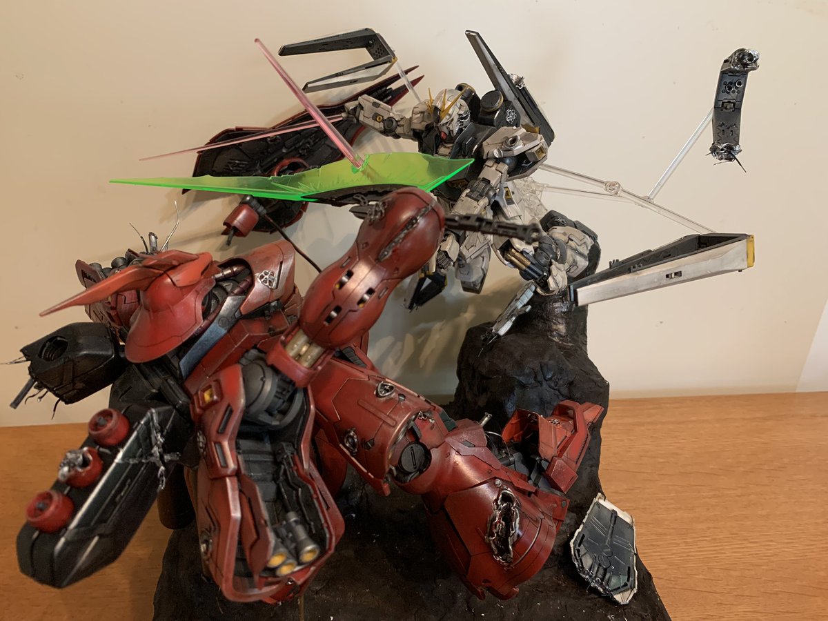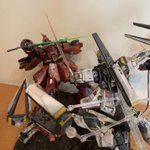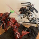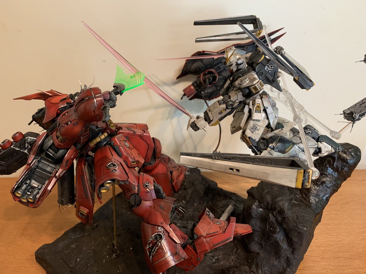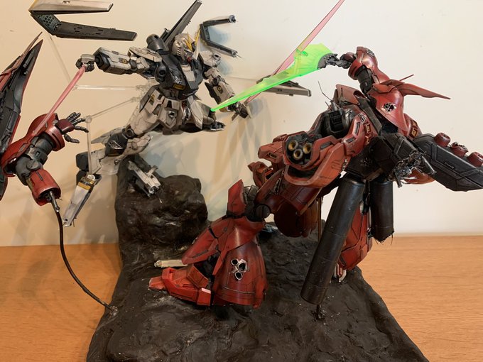 機動戦士ガンダム逆襲のシャア アムロがゴリ押しでシャアを追い詰めている感じです。 【再掲】見直したらポージングがおかしかったので撮り直しました。 #ガンプラ好きと繋がりたい #ガンプラの画像貼るとRTされると聞いて #機動戦士ガンダム逆襲のシャア