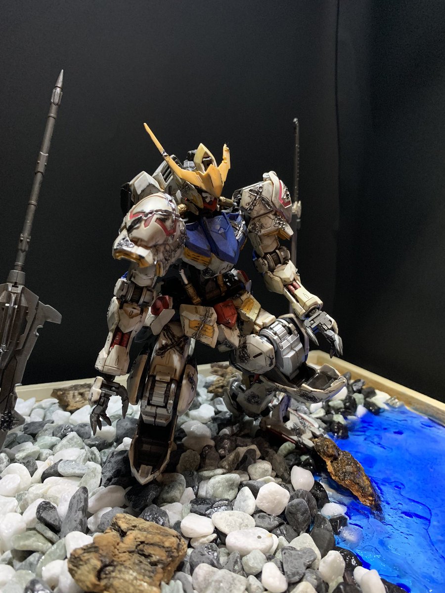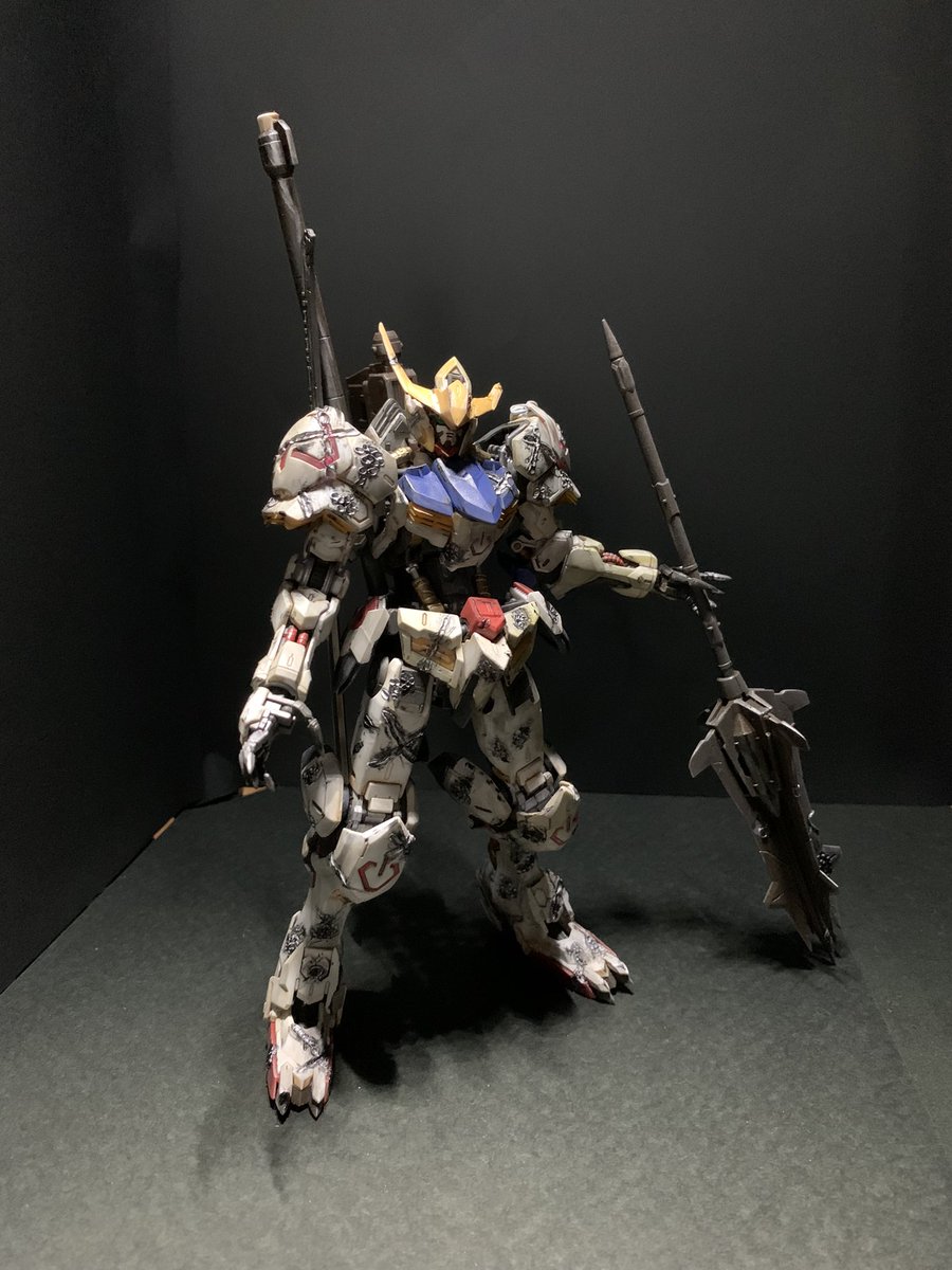 完成! ウェザリング&ダメージ加工 次は精密ノコギリとかも使ってもっと汚したい ジオラマの画像もあげるので観てください #ガンプラ好きと繋がりたい #ガンプラの画像を貼るとRTされると聞いて #ガンダムバルバトス