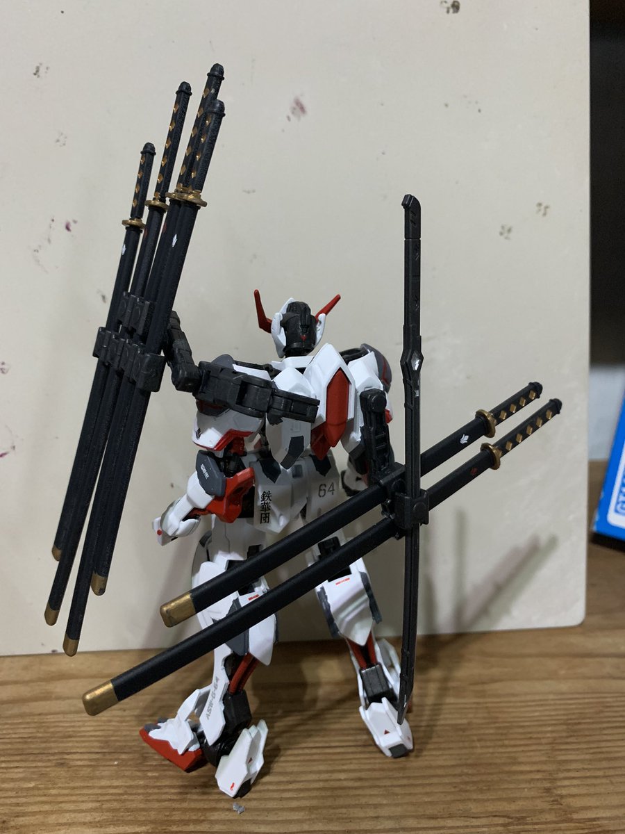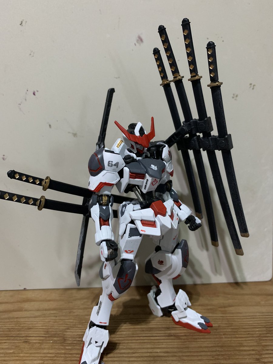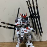 HGバルバトス改造 背中側の縦にマウントしてる太刀がメインウェポンで、他の刀は牽制で投げたり盾として扱う設定です。 腹部のフレームを切ってスプリングスに変えてみました。 #ガンプラ好きとつながりたい #ガンプラの画像を貼るとRTされると聞いて #ガンダムバルバトス