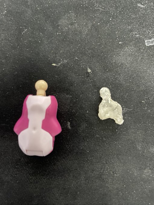 3 5 で、型取りくんで形を取ってプラリペアで大雑把に複製。エポパテでだいたい真ん中に固定。ある程度かたまったら重曹詰めて瞬着流し込んで固定を強化。(´・ω・`)で、ちょっと前傾ぎみになってたんで結局玉を切って真鍮線で取り付け直し。 #メガミデバイス #朱羅 #弓兵 #桜鬼 22/11/16 21:39