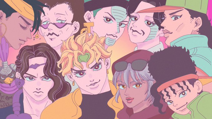 #JOJO版深夜の真剣お絵描き60分一本勝負 お題「ジョセフ・ジョースター」「ブローノ・ブチャラティ」「ジャン・ピエール・ポルナレフ」 主催様いつもお題ありがとうございます。来年祝おうと思ってたけど挑戦出来ました!初描き三兄弟☺️ジョセブチャ、ハピバスデイ🎉💗