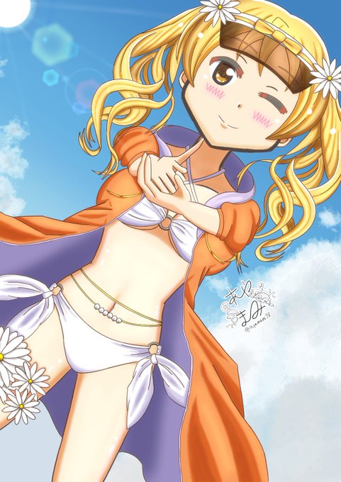 rkgk 暑いので模写っぽく水着マミさん🎗️🍹🎆